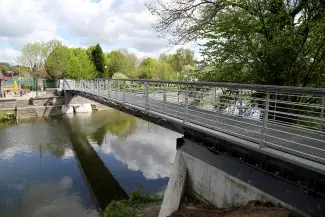 - la création d'une passerelle piétonne encadrant une vingtaine de logements (longue de 48,5 mètres, elle surplombe l'Ourthe pour relier la rue sur la Gère au parc Juliénas),