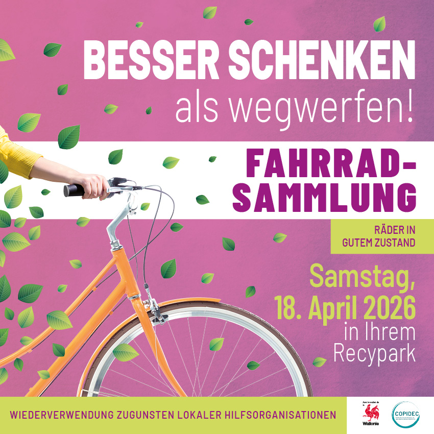 Bitte beachten Sie, dass die Sammlungen im Jahr 2026 wie folgt stattfinden: Samstag, 18. April 2026 für Fahrräder und Samstag, 17. Oktober 2026 für Spielzeug.