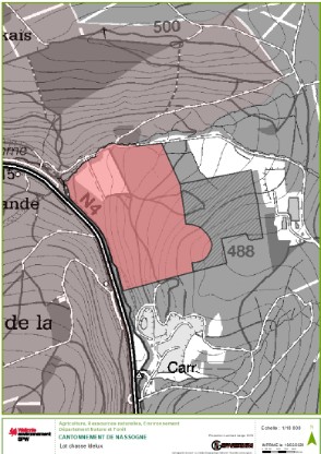 - Superficie de la propriété : 53 ha (compartiments : 901,902,903,904,905,907). Les 20 ha correspondant au compartiment 906 situés entre la clôture et le site de valorisation d’IDELUX Environnement ne font pas partie du lot (zone hachurée sur la carte).