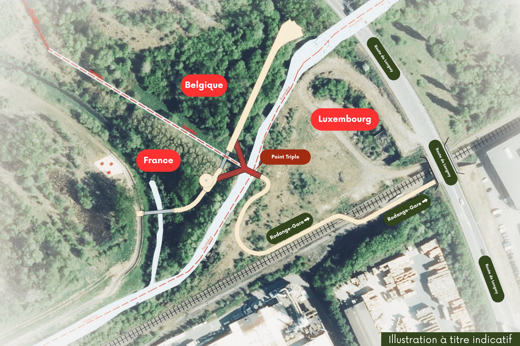 Ce pont pour piétons et cyclistes reliera directement les communes de Mont-Saint-Martin, Aubange et Pétange, aujourd’hui encore séparées par une frontière naturelle.